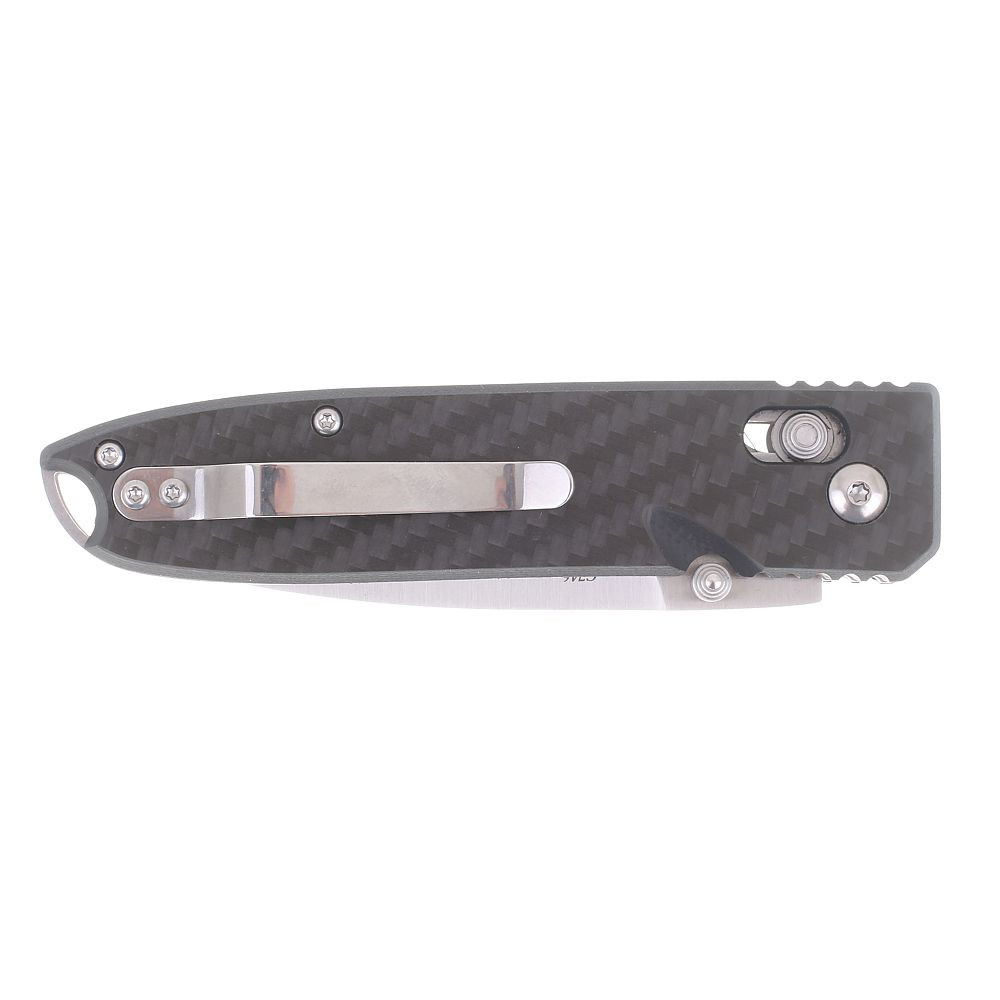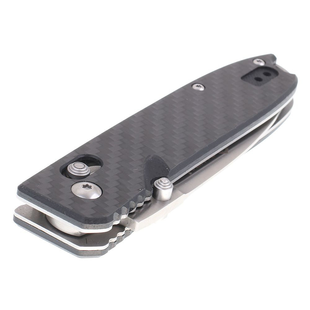 Rukojeť je ergonomicky tvarovaná a dobře padne do dlaně. V dolní části jsou jemné vlnky, které zamezují sklouznutí prstů na ostří. Střenky jsou z pevného kompozitu G10, materiálu odolnějšího než běžné plasty, přitom lehkého, neabsorbujícího vodu a odolného vůči opotřebení. Součástí rukojeti je ocelová kapesní spona, kterou lze nůž připevnit na opasek nebo do kapsy.