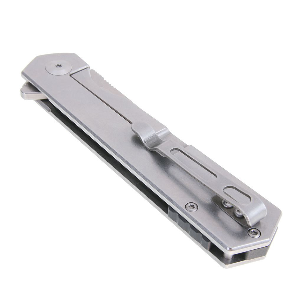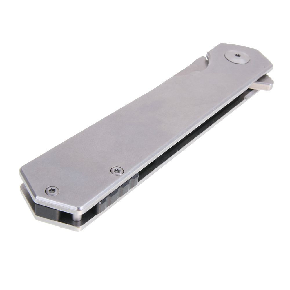Celá rukojeť je vyrobena z nerezové oceli, jednoduchého tvaru s ergonomickým zářezem pro prsty. Nůž se otevírá pomocí Flipperu, který současně chrání prsty při práci. Součástí rukojeti je také ocelová klipsa, kterou lze snadno přesunout na druhou stranu.