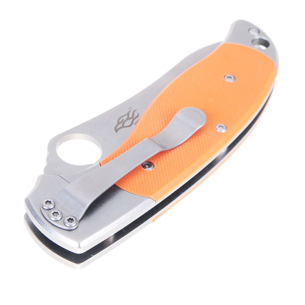 Rukojeť nože je tvořena odolnými střenkami z kompozitního materiálu G10, který vyniká vysokou pevností, dlouhou životností a odolností vůči mechanickému namáhání. Střenky jsou upevněny na ocelové konstrukci třemi šrouby. Ocelové koncovky rukojeti navíc chrání nůž před poškozením při nárazech. Díky robustní konstrukci váží nůž 164 g, což je ideální kompromis mezi pevností a komfortem při nošení.