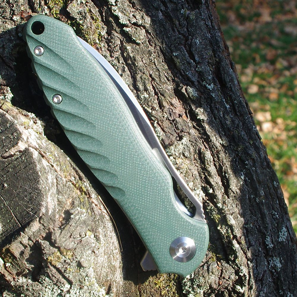 Rukojeť je vyrobena z osvědčeného materiálu G10, který je známý svou vysokou odolností proti opotřebení, vlhkosti, vysokým teplotám i mechanickému poškození. Povrch je lehce zdrsněný, takže nůž v ruce neklouže a drží pevně i při delší práci. Model FH71 patří mezi nože typu Flipper, což zajišťuje rychlé a pohodlné otevírání jednou rukou.
