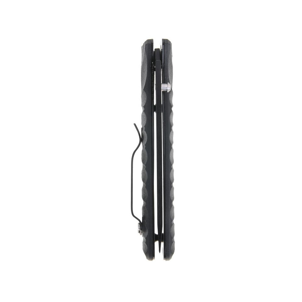 Rukojeť je z kvalitního ABS plastu – je lehká, odolná, tepelně stálá a netoxická. Díky protiskluzovému vroubkování po stranách padne nůž jistě do ruky za každého počasí. Pro pohodlné nošení je nůž vybaven kovovou kapesní sponou, která umožňuje uchycení na opasek nebo kapsu.