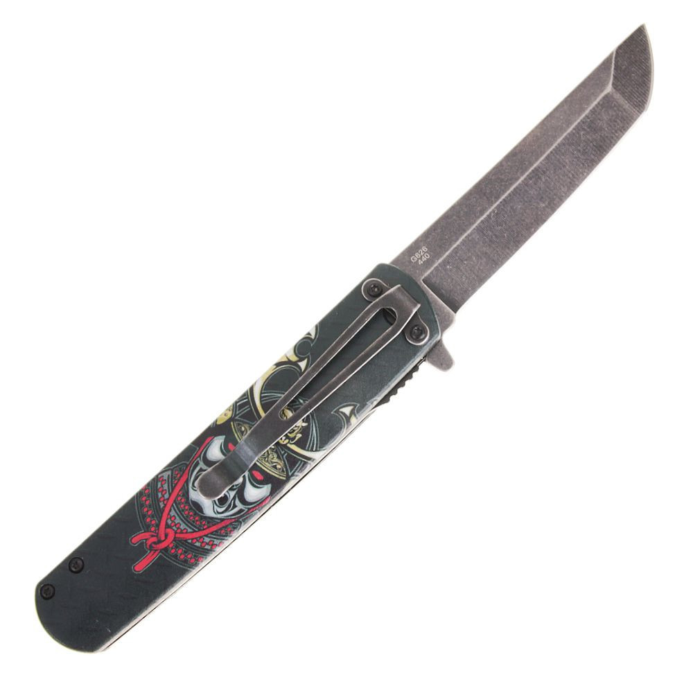 Stylový a praktický EDC nůž s čepelí Tanto a odolnou ABS rukojetí. Ideální pro turistiku, outdoor i každodenní použití.