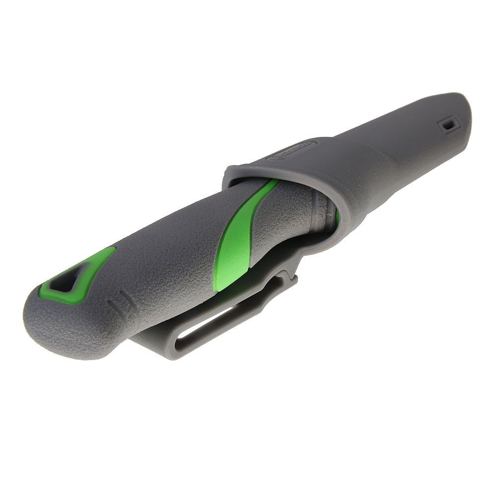 Nůž váží pouze 96 g, takže se pohodlně nosí. Součástí balení jsou lehké polymerové pouzdro z PP s klipem na opasek a odtokovým otvorem pro odvod vody z čepele po použití.